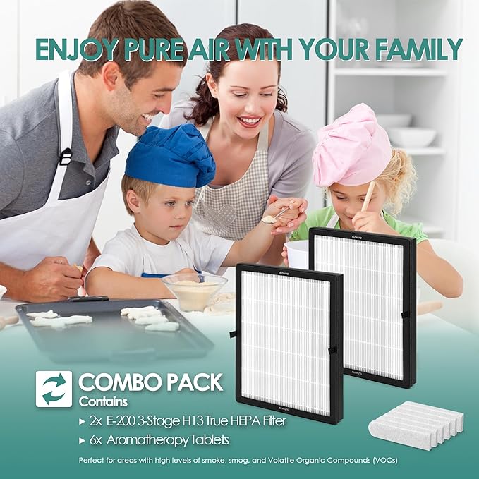 - [ π―-π¦π§πππ ππππ§π₯ππ§ππ’π‘ π¦π¬π¦π§ππ ] β The E-200 filter replacement kit includes true High-Efficiency filter, activatedCarbon filter, and ultra-fine pre-filter. Efficient filter of the 3-in-1 filter can filter fineDust, tinyPollen, and more airborne particles