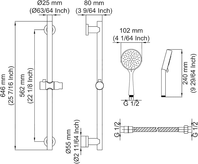 - [Adjustable Bracket] The adjustable shower bracket allows you to adjust the height and angle of the handheld shower head after installation. This feature is convenient for kids and adults, washing pets, and even showering while seated, providing the perfect shower experience for every family member.