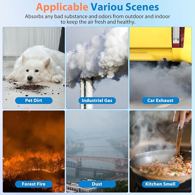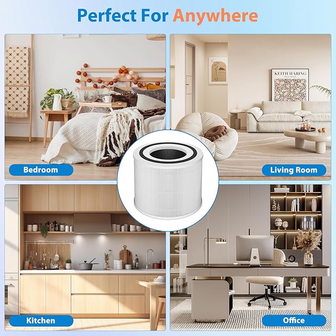 - 3-In-1 Layer Filtration System: Ultra Fine Pre-Filter: Filtering large particles Filtering large particles such as dust, pet dander, hair, fibers, and lint to extend filter life. True HEPA 14 Air Filter: Captures 99.99% of particles as down as 0.1 microns in size, such as household dust, pet dander, etc. Activated Carbon Filter: Absorb unpleasant smells, such as second-hand smoke, kitchen cooking, and various odors to clean the air efficiently. This fine air filter system improves air quality. Provides a new and comfortable air environment for your family.
