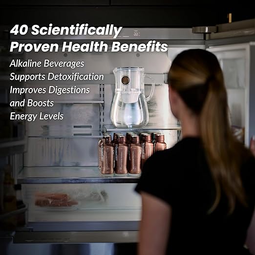 - VERSATILE ALKALINE BEVERAGE INFUSER PITCHER: Equipped with a food-grade stainless steel infuser, allowing you to brew rich alkaline coffee, flavorful teas, and herb or fruit-infused beverages, enhancing your drinking experience.