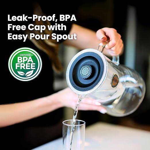 - PREMIUM BOROSILICATE GLASS CONSTRUCTION: Crafted from high-quality Borosilicate Glass, known for its superior taste - Glass Tastes Better. This ensures no leaching of plastics and a pure drinking experience from water pitcher filter