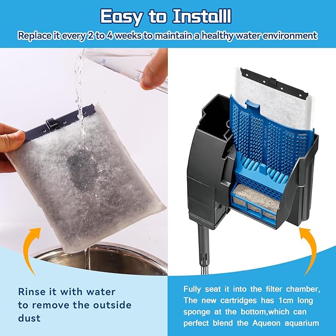 - 【Easy to use】Before use, rinse with cold water to remove external dust, and then completely place it in the filter chamber. Replace every 2-4 weeks to maintain a healthy water environment.