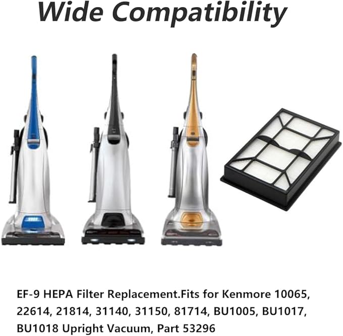 - 【Durable HEPA Filtration】Our EF-9 HEPA filters for Kenmore offer superior filtration, capturing 99.97% of particles as small as 0.3 microns. These filters ensure cleaner air and prolong vacuum life.