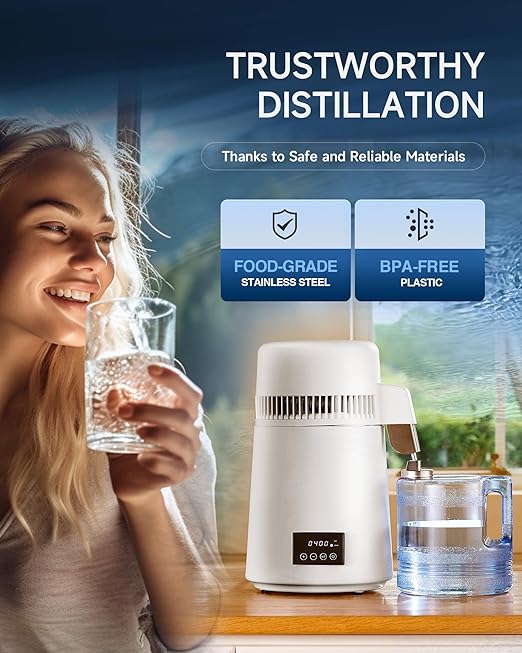 - 【Drink Healthy, Live Healthy】 Don't let impurities ruin your water and your health! Get rid of harmful chemicals, VOCs, and other solids from your tap water easily and conveniently with CO-Z's 1.1-gallon tabletop water distiller