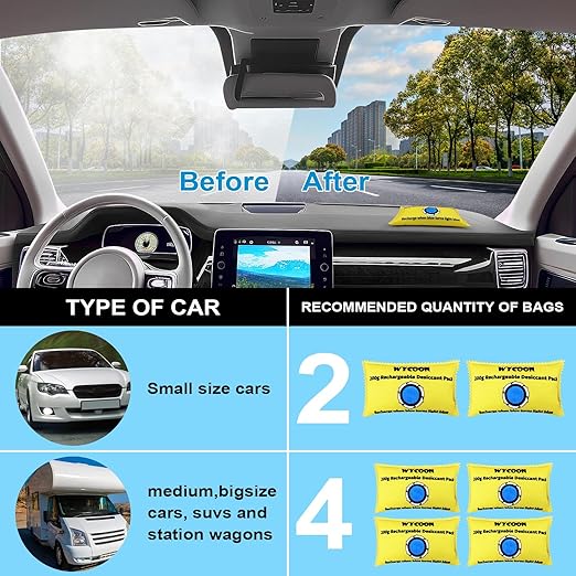 - Versatile & Portable: Our reusable moisture absorbers are lightweight and compact. Perfect for preventing moisture in small spaces like cars, gun safes, or travel bags or larger spaces like storage room, cupboard, tool shop, garage, RV, boat, basement. Keep your valuables safe and dry wherever you go