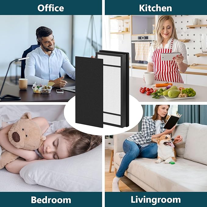 - High Efficiency Filtration:Enjoy fresh air all-year-round with FCFMY Replacement Filter H Kit to ease uncomfortable symptoms caused by problematic air. The H13 True HEPA Filter works alongside the High-Efficiency Activated Carbon Pre-Filter to attach most of particles as small as 0.03 μm and get rid of unpleasant household odors and wildfire smoke.