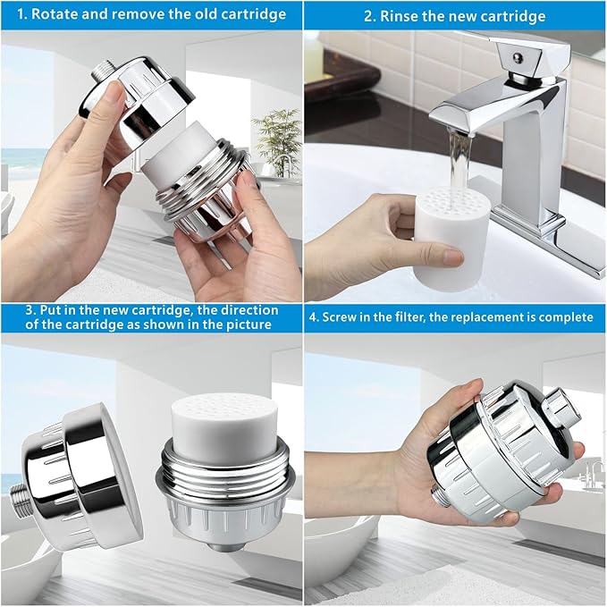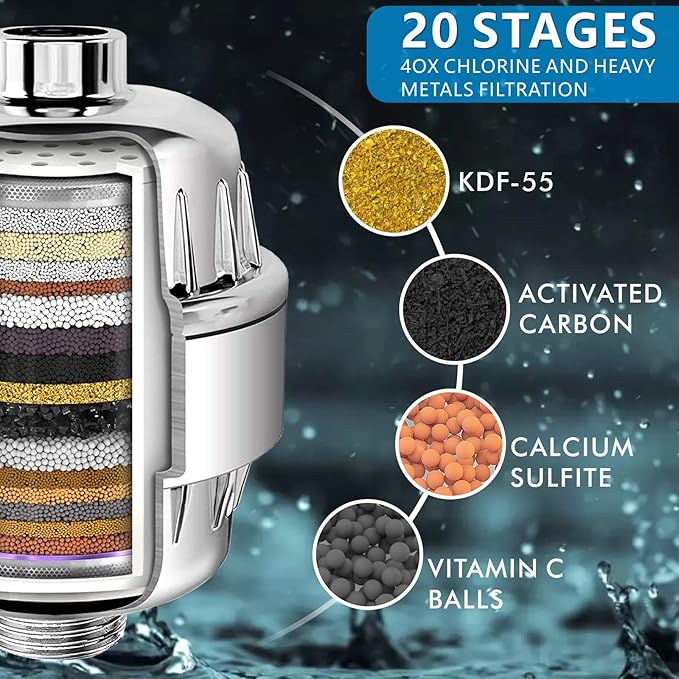 - REPLACEABLE CARTRIDGES - 20 stage formula filters water to help with dry skin, rough hair and itchy skin. Enjoy 4-6 Months of filtered soft water per replacement Cartridge.