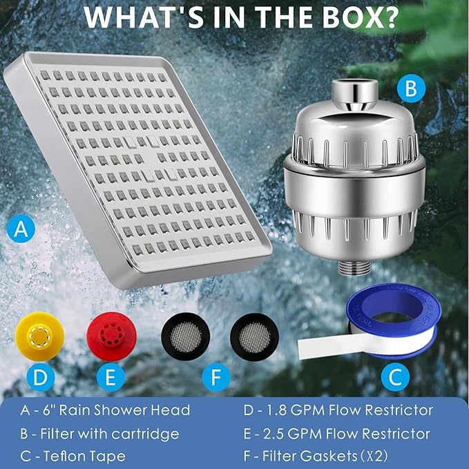 Voolan Filtered Shower Head - 20 Stage Luxury Rain Shower Filter For Hard Water for Remove Chlorine and Harmful Substances - 6" Square High Pressure Rainfall Showerhead (Chrome)
