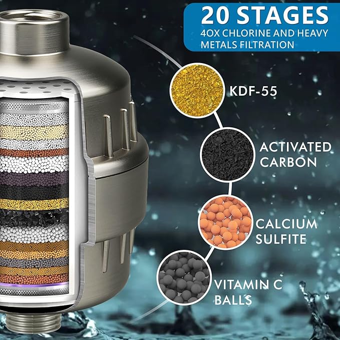 - REPLACEABLE CARTRIDGES - 20 stage formula filters water to help with dry skin, rough hair and itchy skin. Enjoy 4-6 Months of filtered soft water per replacement Cartridge.
