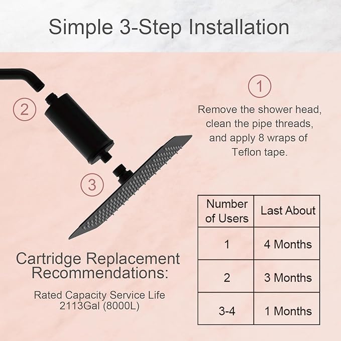 - Easy Installation: Designed for hassle-free installation on standard shower heads. It is suitable for G1/2-inch and NPT1/2-inch showers. Whether yu have a rain shower, hand shower or dual shower combo, enhance your shower with our shower filters!