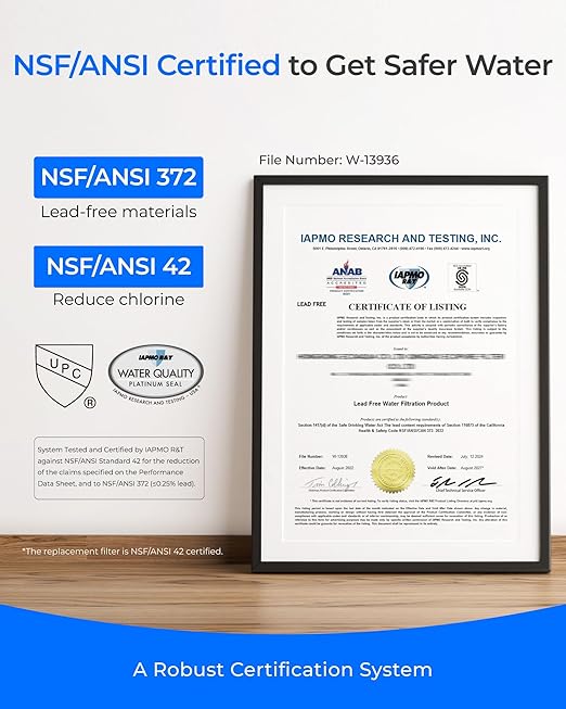 - Great Fit: Compatible with hot water dispenser to enhance your kitchen with this under sink water filter. It has been certified NSF/ANSI 372 standard for lead-free materials to ensure your water safety.