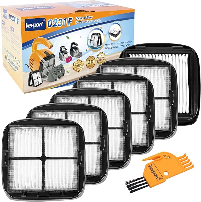 KEEPOW Pet Hair Eraser Filter Replacement 97D5 6 Pack, Compatible with Bissell Pet Hair Eraser Corded Handheld Vacuum 33A1 Series, 35V4 Series, 47R5 Series, Part# 2037416, 2031432