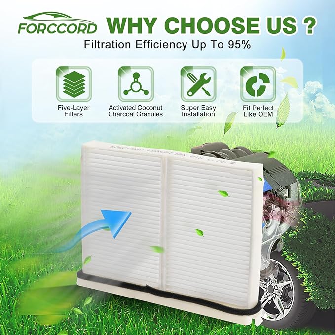 - 【5 Layers Newly Material】Compare with Standard cabin air filter, we adopts a newly upgraded large-capacity five-layer blue silk filter cloth+melt blown cloth, Double layer HEPA filter,which can remove 99.9% of harmful pollutants(dust, pollen,exhaust, etc).