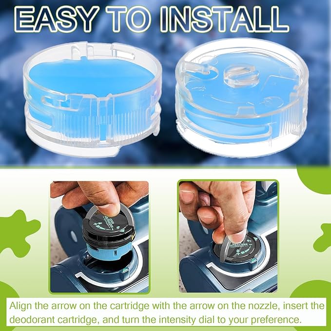 - Easy to Install: No other tools required, align the arrows on the cartridge with the arrows on the nozzle, insert the odor neutralizer cartridge, and rotate the intensity dial to your preference.