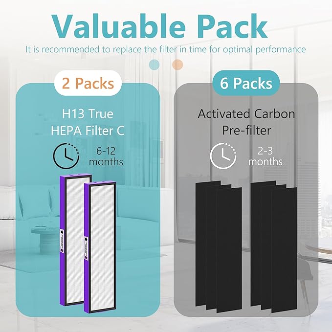 - Maintenance suggestions: We recommended to replace the filter C every 6-12 months and to replace the activated carbon pre-filter every 3-6 months depending on using environment and frequency for optimal performance.
