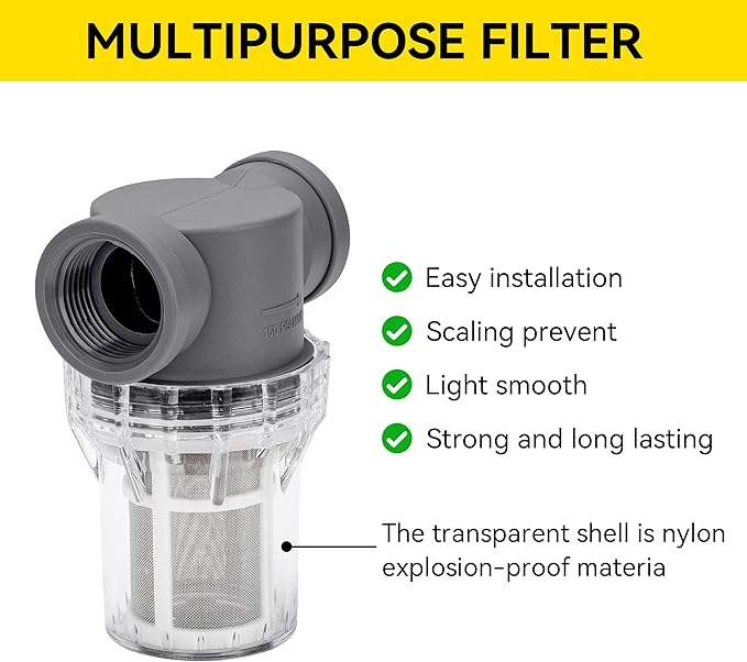 - Advantage: Our filter is made of durable plastic case and stainless steel filter screen. It is sturdy, rustproof, corrosion-resistant and can be used for a long time.