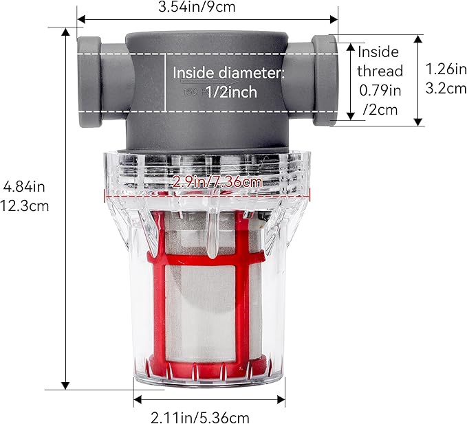 - Convenient: Easy to open and clean out the mesh screen, without extra tools are needed, just unscrew it with your hand and you can clean it anytime. A transparent filter bowl allows you to see when the mesh screen needs cleaning.