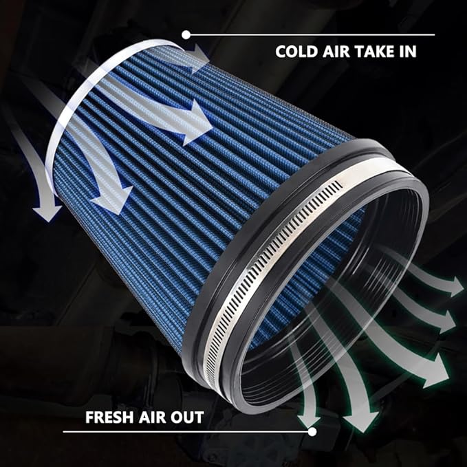 MUGE RACING 6" 152 mm High Flow Inlet Air Filter, Air Intake Cone Filter Replacement Performance Washable Clamp-On Dry, 6'' Tall(Blue)