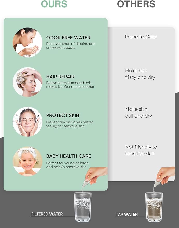- Why Do You Need a Filtered Handheld Showerhead?: Chlorine is commonly used as a disinfectant in municipal water supplies, but inhaling chlorine during showers can cause dry skin, damaged hair, and respiratory issues. Additionally, water often contains heavy metals like lead, mercury, and cadmium, which can enter the supply through industrial pollution, aging pipes, or natural sources. Prolonged exposure can negatively impact your health. You need an effective filtered handheld showerhead to ensure a healthier shower experience!