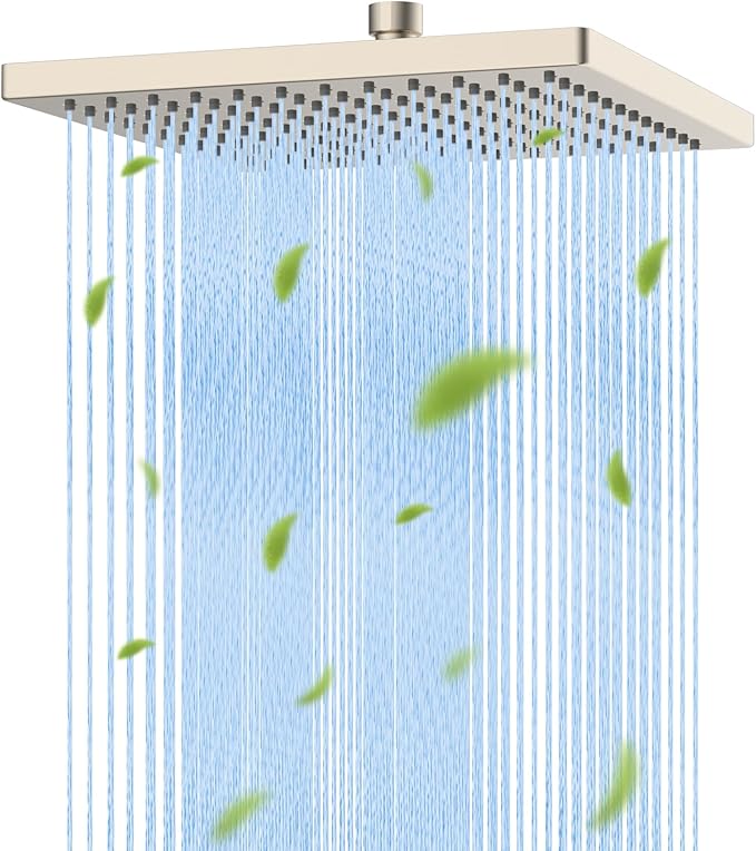 - Self-cleaning Silicone Nozzles: The rainfall shower head has 144 soft silicone nozzles, meticulously designed to prevent limescale buildup and clogging. These high-quality silicone nozzles not only ensure a safe and healthy bathing experience but also make cleaning a breeze. Wipe away any residue or buildup, and the self-cleaning properties of the silicone material will maintain the nozzles in pristine condition, ensuring an enjoyable shower every time