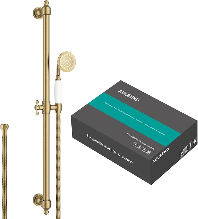 Shower Slide Bar Handheld Shower Head with Hose, shower slide bar,adjustable height shower head (C-retro, Brushed Gold)