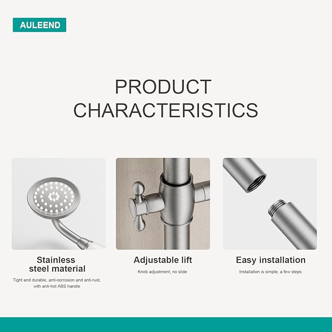 - [Adjustable Bracket] The adjustable shower bracket allows you to adjust the height and angle of the handheld shower head after installation. This feature is convenient for kids and adults, washing pets, and even showering while seated, providing the perfect shower experience for every family member.