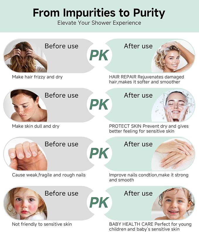 - 【Built-in shower filter】: including KDF-55, medical stone ball, calcium sulfite and other 9 kinds of filter balls. Through the filter medium, gradually remove the residual chlorine in the water and inject beneficial trace elements, soften the water, activate the water, reduce dry skin itching, no hair loss, no dryness