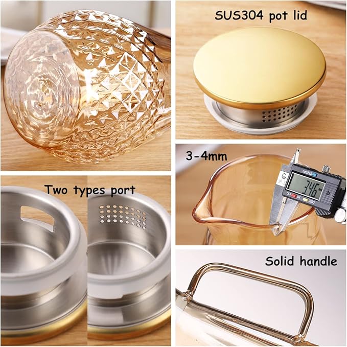 - 【Refrigerator & Stovetop Use】Thick borosilicate glass material of the pitcher not only can be heated on the stove directly but also can be storage container in the refrigerator, it will bring the best to your drink Experience.