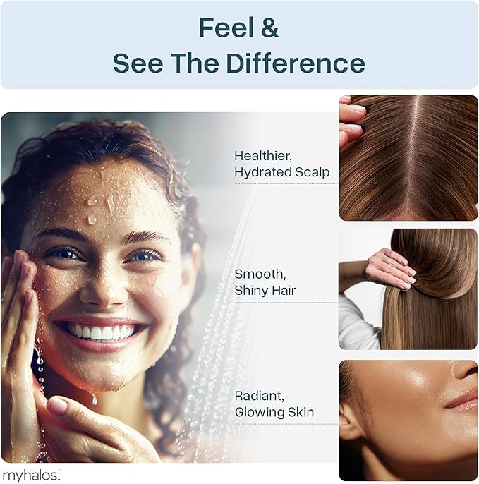 MyHalos® Filtered Shower Head for Hard Water Filter - High Pressure, Removes Chlorine - Shower Head Filter for Hard Water Softener Showerhead, Easy Install, For Hair & Skin, Filtering (Brushed Metal)