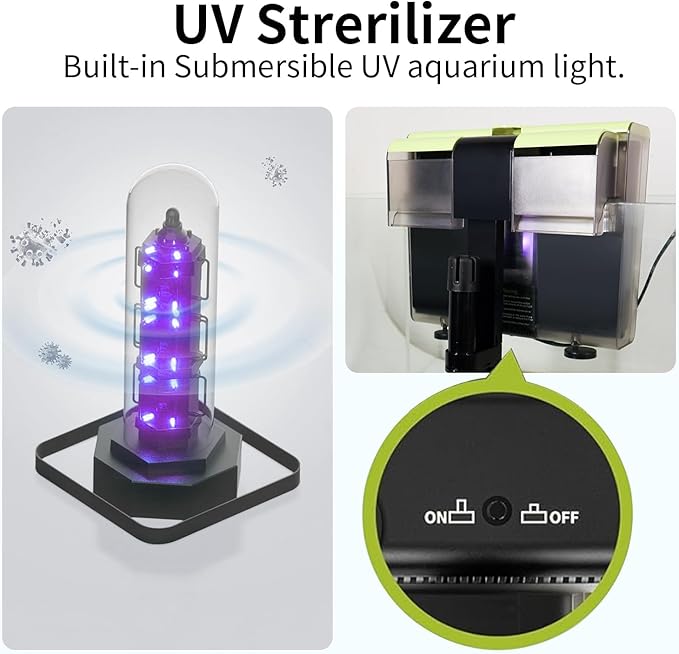 - ✨ Powerful External Dual Filter: Equipped with an 8W pump and 3W U-V lamp, it offers a maximum lift height of 0.6 meters and a flow rate of up to 650L/H, perfect for 30-45 gallon freshwater and saltwater aquariums. The thoughtfully designed inlet mesh prevents fish from being sucked in, ensuring their safety and comfort.
