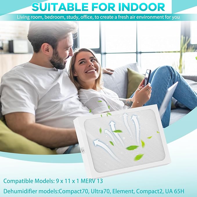 - 1.PERFECTLY COMPATIBLE: 9 x 11 x 1 Replacement Dehumidifier Filter Media is perfectly for Compatible with the Santa Fe Compact70, Ultra70, Element, Compact2, UA 65H dehumidifier models, to ensure a perfect fit and optimal functionality,Please confirm your air Dehumidifier model before ordering.