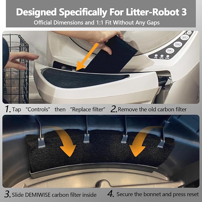 - Litter Box Filter For Litter-Robot 3: 10×3.5 Inch carbon filters are designed compatible with Litter-Robot 3, these filters offer a seamless fit for hassle-free replacements, ensuring a perfect fit and optimal performance