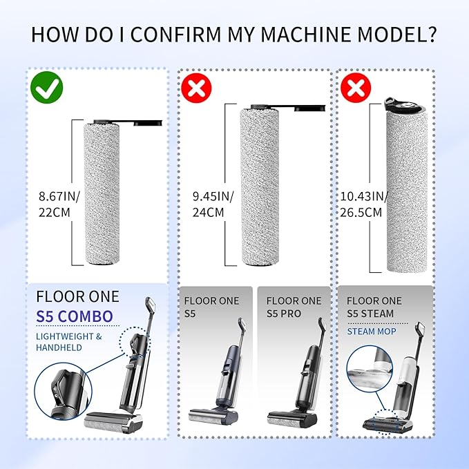 - 【Only S5 Combo 】 Roller brush(8.67 inch / 22cm) replacement and filters compatible with Tineco Floor ONE S5Combo,Not compatible with Floor ONE S5,Floor ONE S5 Pro,Floor ONE S5 Steam wet dry cordless vacuum cleaner, Please check the model of your vacuum cleaner or measure the size of the rollers and check the product picture description before purchase to ensure accurate compatibility.