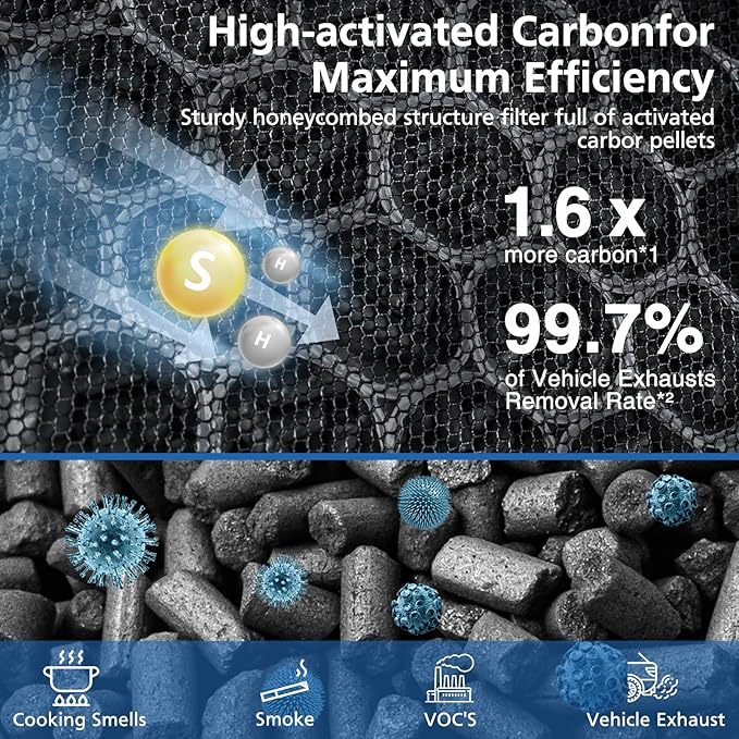 - Idea for Households with Pets: The custom high-efficiency 240 air purifier filter activated carbon filter layer improves deodorant ability by 60%, helps reduce unpleasant odors and fumes such as smoke, cooking odors, and pet odors, as well as VOCs, which makes it a good choice for homes with pets, cooking, and smokers. Reduce all odors and gases from your home to improve the air quality and your health without worrying about second-hand pollution