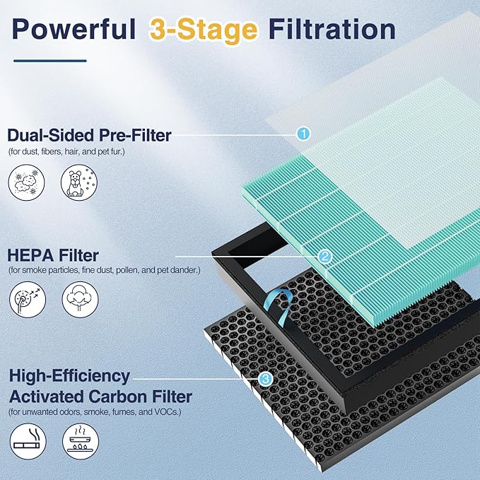 - 【IDEAL FOR ASH, WILDFIRE SMOKE, AND TOXIC COMPOUNDS】The Smoke Remover replacement filter for Vital 100S Vital 100S-P Air Purifier is equipped with Dual-Sided Pre-Filter which is effective handles larger particles, ash, and wildfire pollution—perfect ensuring a quality home environment. The Custom High-Efficiency Activated Carbon Filter provides greater protection against smoke, odors, and toxic chemical compounds during wildfire season