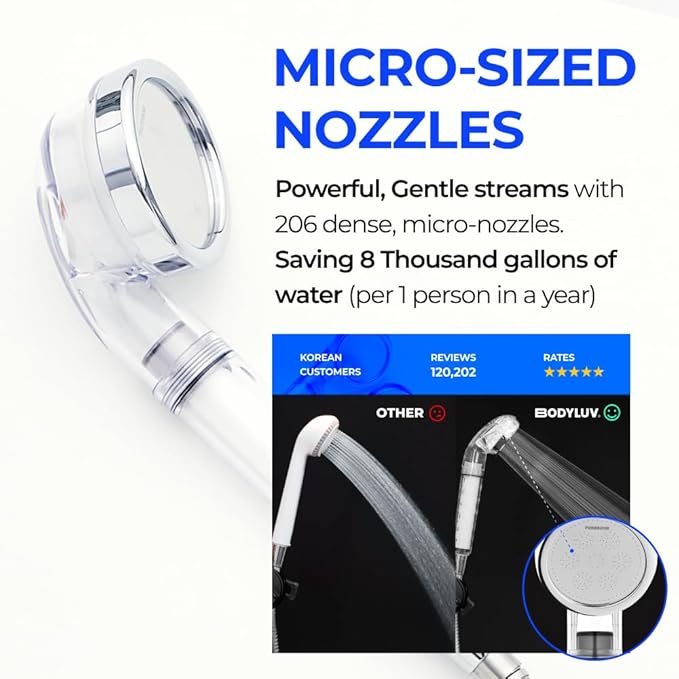 - [Optimal Water Pressure and Gentle Stream] Featuring 206 precisely engineered 0.25π micro holes, this showerhead delivers a powerful yet gentle water stream, providing a satisfying and invigorating shower while maintaining consistent water pressure.