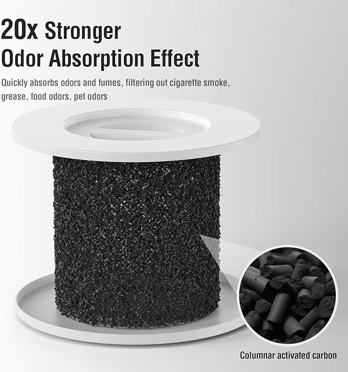 - 3-Stage Filtration: The 14 HEPA filter With 3-Stage Filtration System. 1: A pre-filter catches large particles; 2: The True HEPA filter Attracts 99.97% of airborne particles, and 3: A carbon filter absorb indoor odors coming from smoke, cooking and pets
