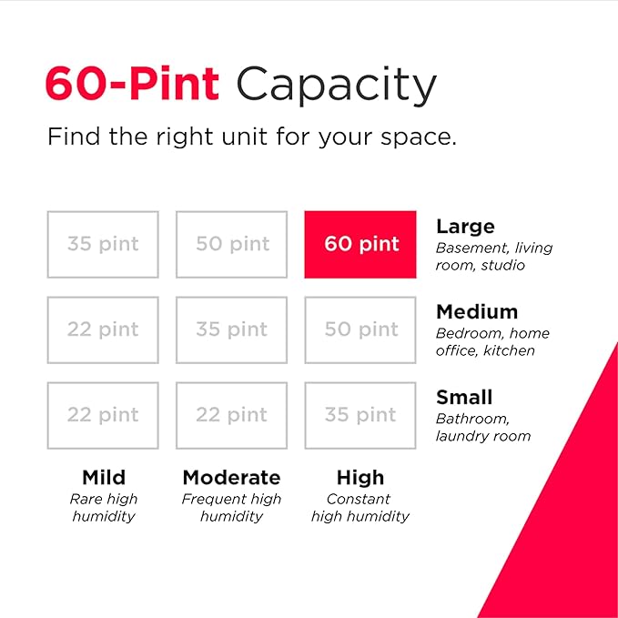 - Portable Design: Easily manage humidity in any room with this compact, lightweight dehumidifier, featuring caster wheels and a handle that allow you to easily move the unit room-to-room whenever you need it