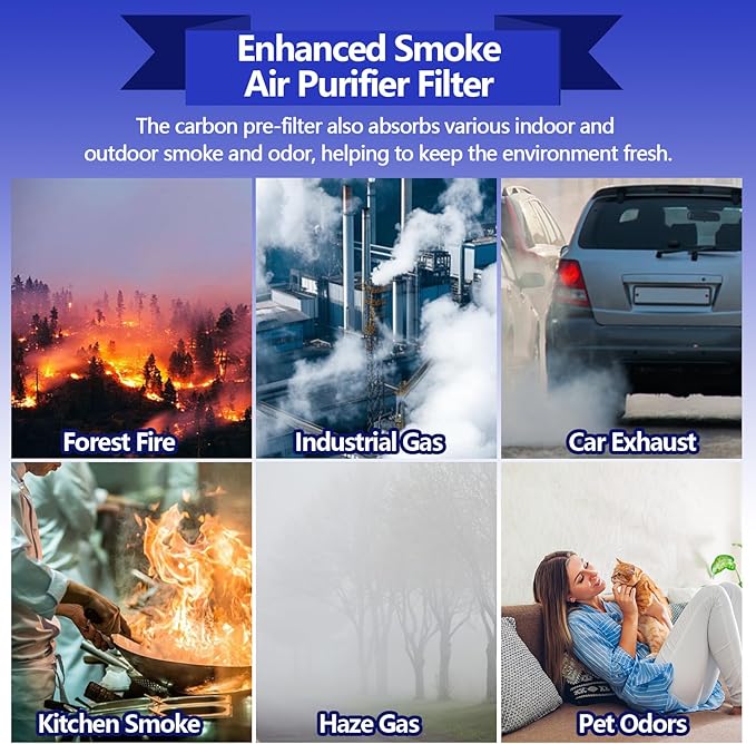 - VERSATILE AIR FILTERS: Good for removing a wide range of pollutants, including smoke, pet odors, industrial gases, cooking fumes, dust, pollen, mold spores, dander, allergens, chemical fumes, and vehicle exhaust, ensuring your air stays fresh and clean