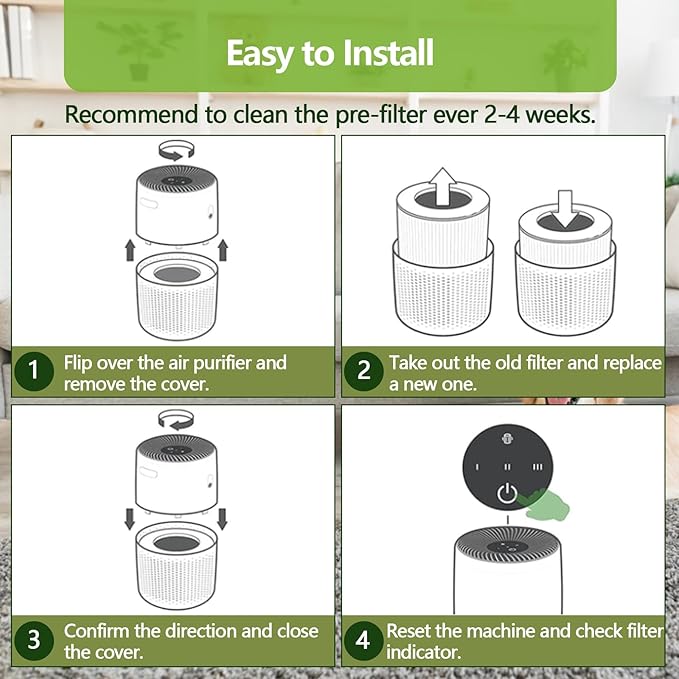 - EASY INSTALLATION: Installing and replacing the air purifier filter is easy, allowing you to keep your purifier running efficiently with minimal effort. We recommend cleaning the HEPA filter replacement every 2-4 weeks and replacing it every 4-6 months