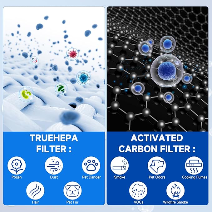- Material : Activated Carbon Filter, H13 True HEPA Filter