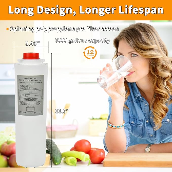 - Replacement on Time: 11-3/5" height, ideal for bottle filling stations. In order to ensure the safety of water for the whole family,The 51300C replacement filter should be replaced every 3,000 gallons after installation or 1 year after installation.Each filter efficiently purifies up to 3,000 gallons of water.High-efficiency filtration is dedicated to providing you with a pure and clean water experience.