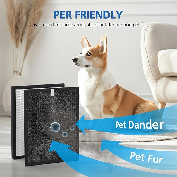 - ACTIVATED CARBON PRE-FILTER : Pre-filter can effectively collecting large particles in the air as well as dust, hairs, pet fur, lint, and helps neutralize household odors from pets, cooking, smoking, wildfire