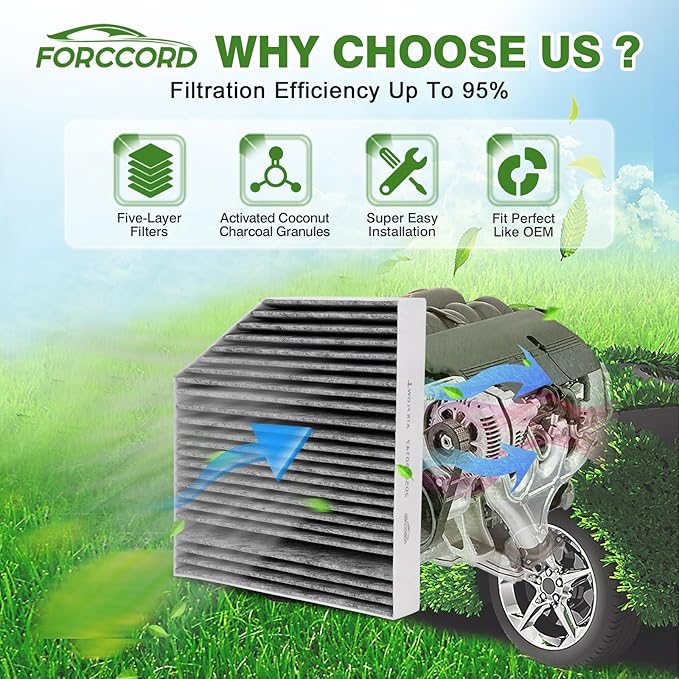 - 【5 Layers Newly Material】Compare with Standard cabin air filter, we adopts a newly upgraded large-capacity five-layer blue silk filter cloth+melt blown cloth, Double layer HEPA filter,which can remove 99.9% of harmful pollutants(dust, pollen,exhaust, etc).