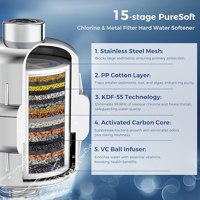 - SUPERIOR FILTRATION TECHNOLOGY:Experience next-level purity with our shower head featuring advanced filtration technology. Equipped with premium Activated Carbon, enriched Vitamin C, and Mineral/Ceramic Balls, it effectively removes up to twice as much heavy metals, chlorine, and chloramines from your tap water, ensuring a healthier bathing routine.