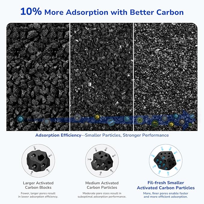 - Strong Carbon Filter: Eliminate unwanted odors with our improved carbon filter. Its finely porous carbon particles trap smoke, cooking smells, and pet odors better than traditional large carbon filters. Your home will smell fresh and inviting all day!