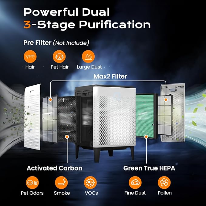 - 【Easy to Install and Replace】Our 400/400S H13 true HEPA filter is simple and does not require the use of other tools. Simply remove the dirty 400/400s filter and replace it. For better performance, we recommend replacing the carbon filter every 10-14 months, depending on usage and environment. Please note that after replacing true HEPA filter, press and hold the "Max2 Change" button/indicator light for 2-3 seconds to reset the filter.