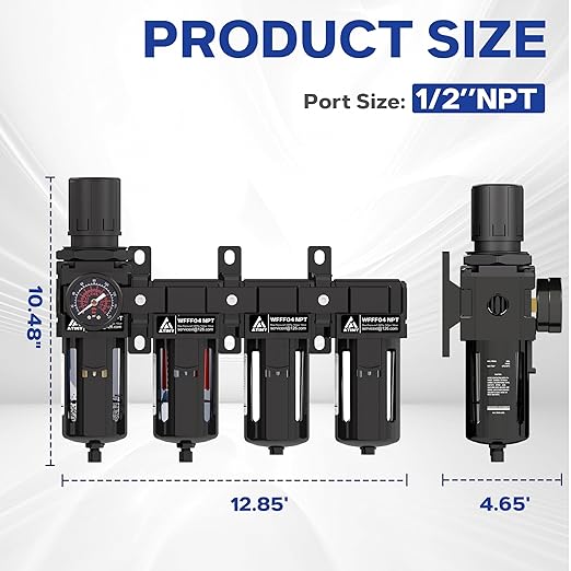 1/2 Inch NPT 4 Stage Air Drying System,Brass Filter&Coalescing Filter,Double Desiccant Dryers & Air Regulator,Metal Bowl, Semi-Auto Drain,Industrial Grade(Black)