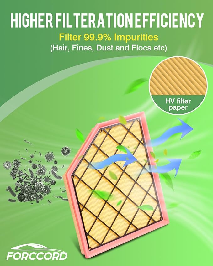 - 【 200% Longer Life】 Compare with Standard air filter, we adopts advanced HV filter paper with higher filtering precision, to absorb 99.9% of impurities (hair,fines,dust and flocs etc.).For the service life, each engine air filters are engineered to last up to 20,000 miles, 200% longer than the standard performance, less replacement
