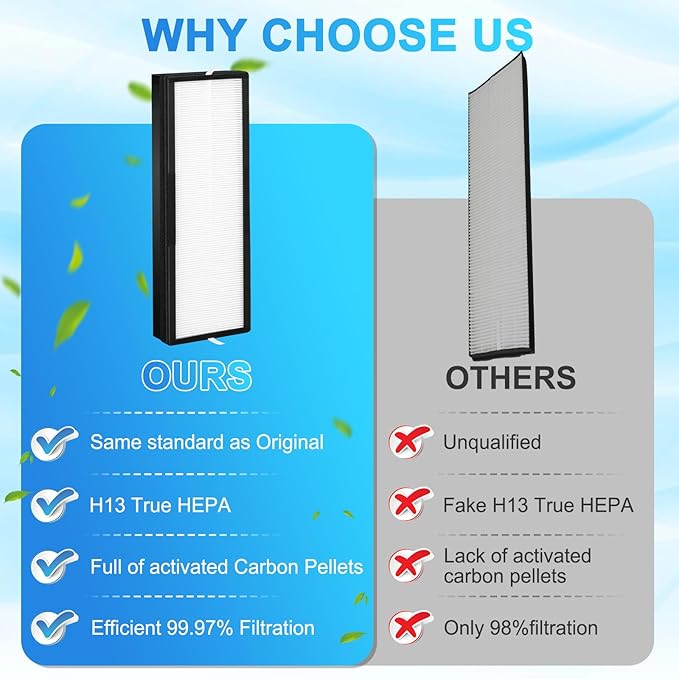 - Features: We follow strict quality control from the selection of H13 true high efficiency filters to production and packaging, our filters are lightweight and easy to grip, strong and durable, and most importantly they are able to match perfectly with many models of Air Cleaner Purifier to meet the needs of the public, with the same quality as the original, and at a more affordable price.